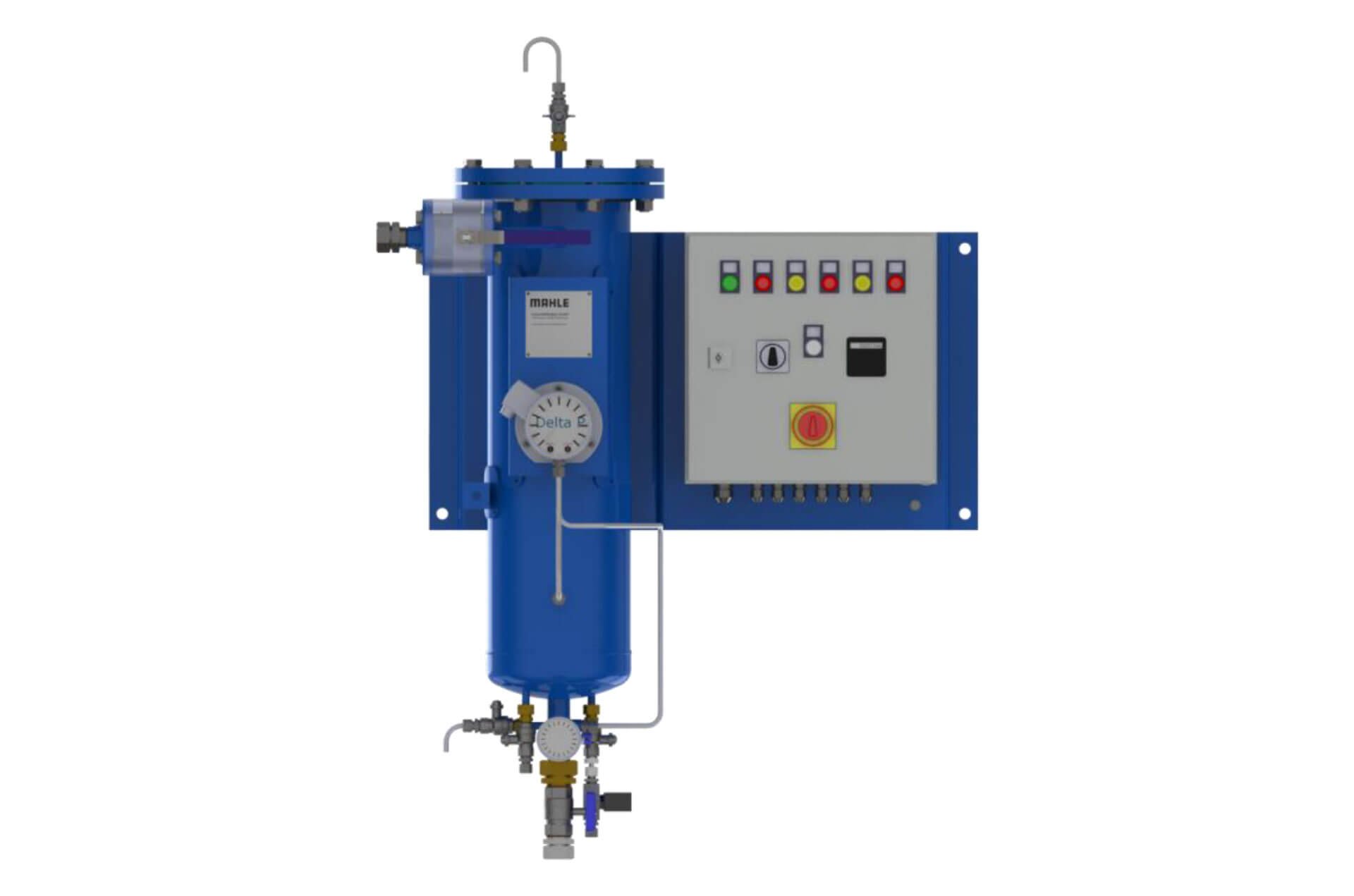The OFWA is used for oil filtration and separation. The system is delivered in two parts (pump module/treatment module) for easier adaptation to the on-site conditions. The geared pump pumps the medium to the treatment stage, where the oil is filtered and separated. Separated water is detected by a probe and discharged automatically. The soiling of the treatment stage is monitored using the differential pressure.